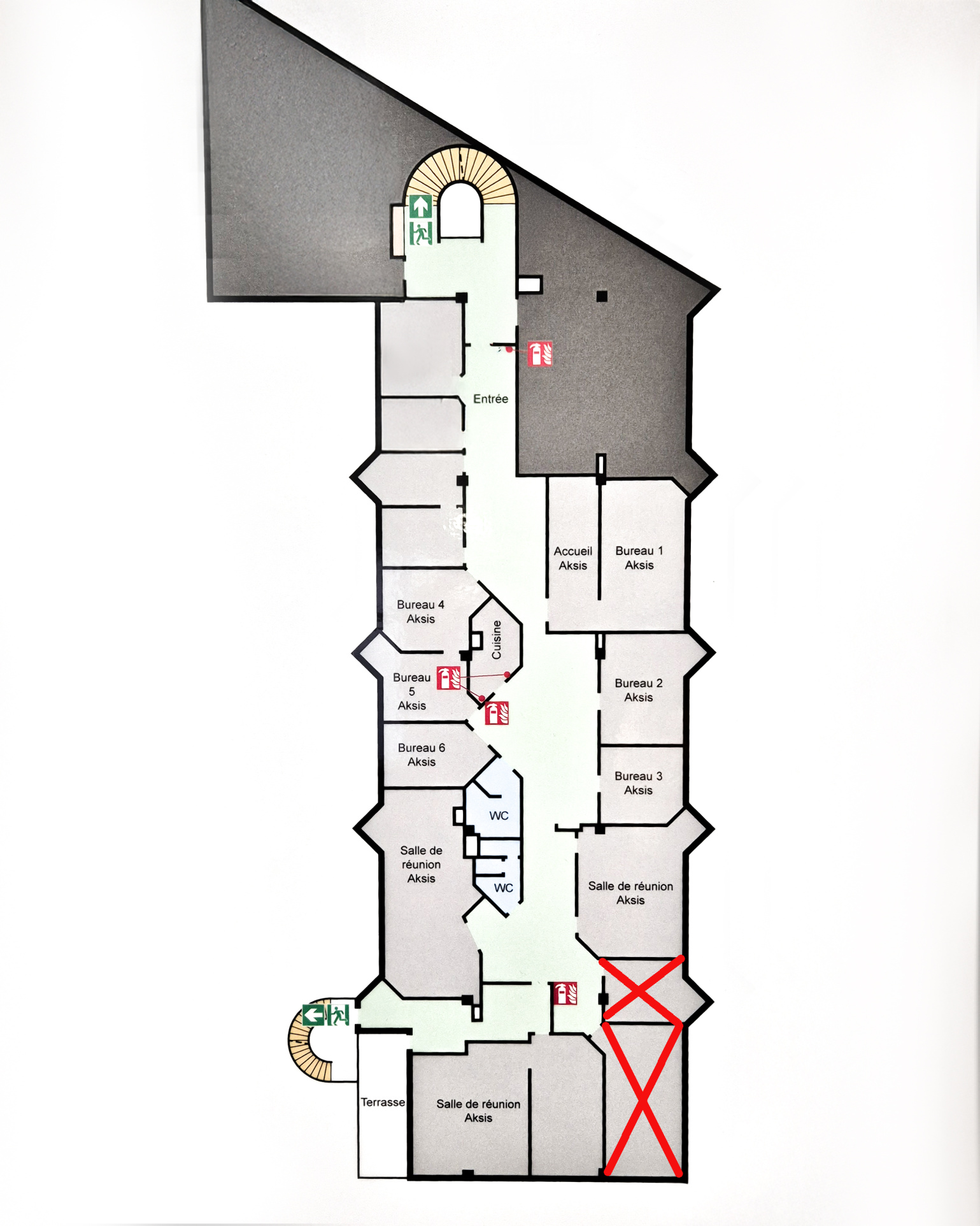 Gilles BUISSON vous propose, en exclusivité, un ensemble de bureaux et salles de réunion + hall, cuisine et toilettes en usage commun offrant un total d'environ 415 m2.