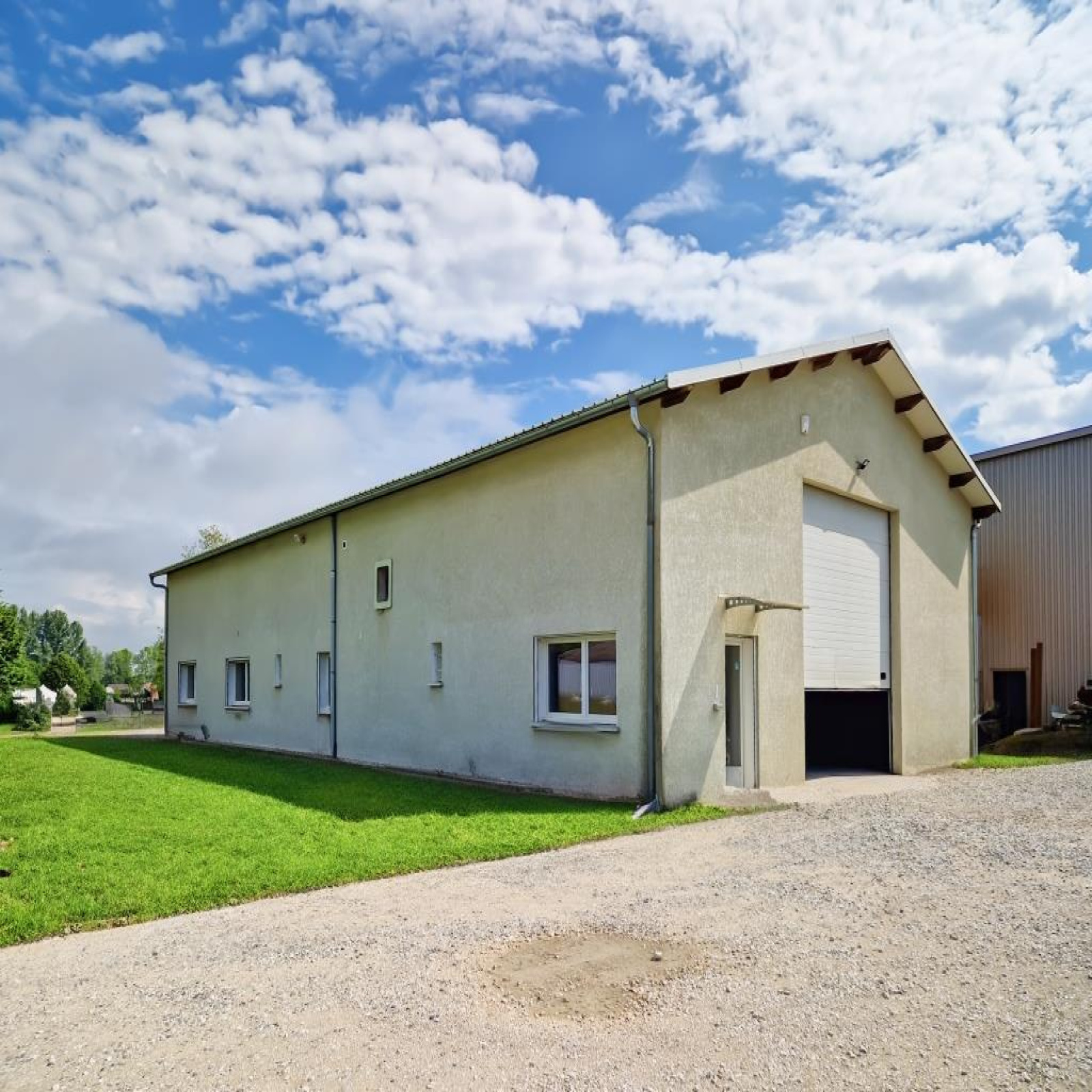 Gilles BUISSON vous propose à Peyrieu et en exclusivité ce vaste local d'activité achévé en 2009 et offrant environ 380 m2 agencés comme suit :