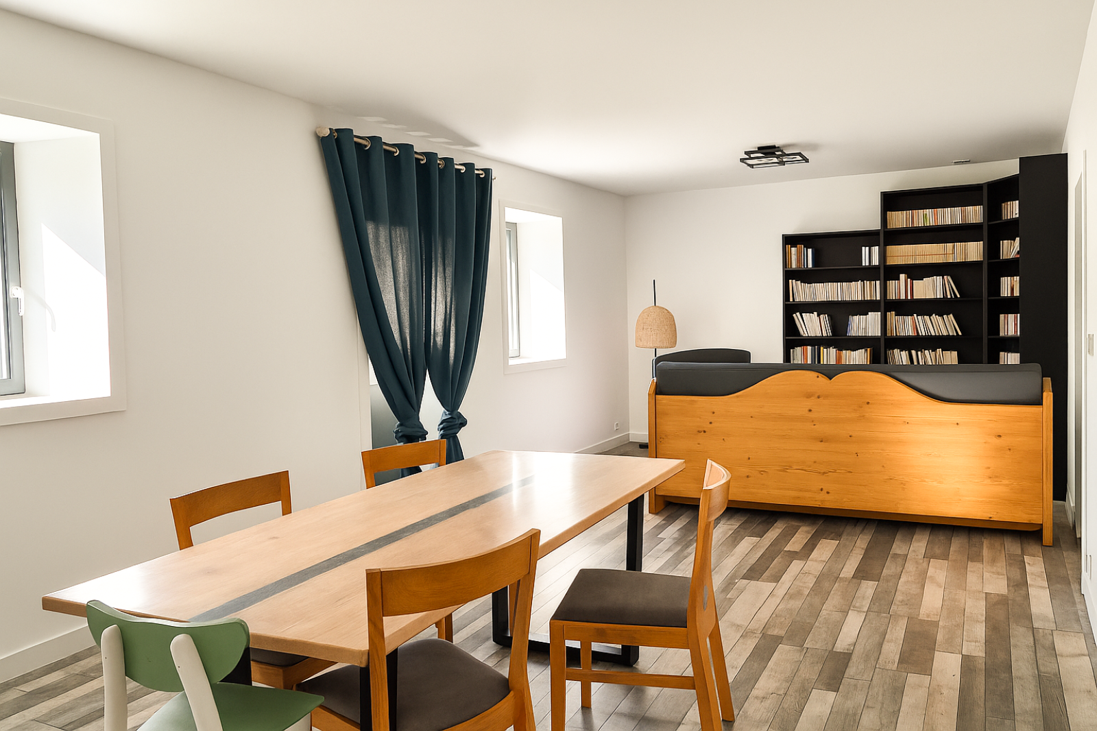 1er étage (et de plain-pied côté ouest) : salon séjour, cuisine équipée, cellier, 3 chambres, salle d'eau avec wc et wc.