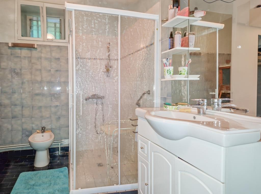 A l'étage : cuisine séparée, salon/séjour, 2 chambres, couloir, wc séparé et salle de bains.