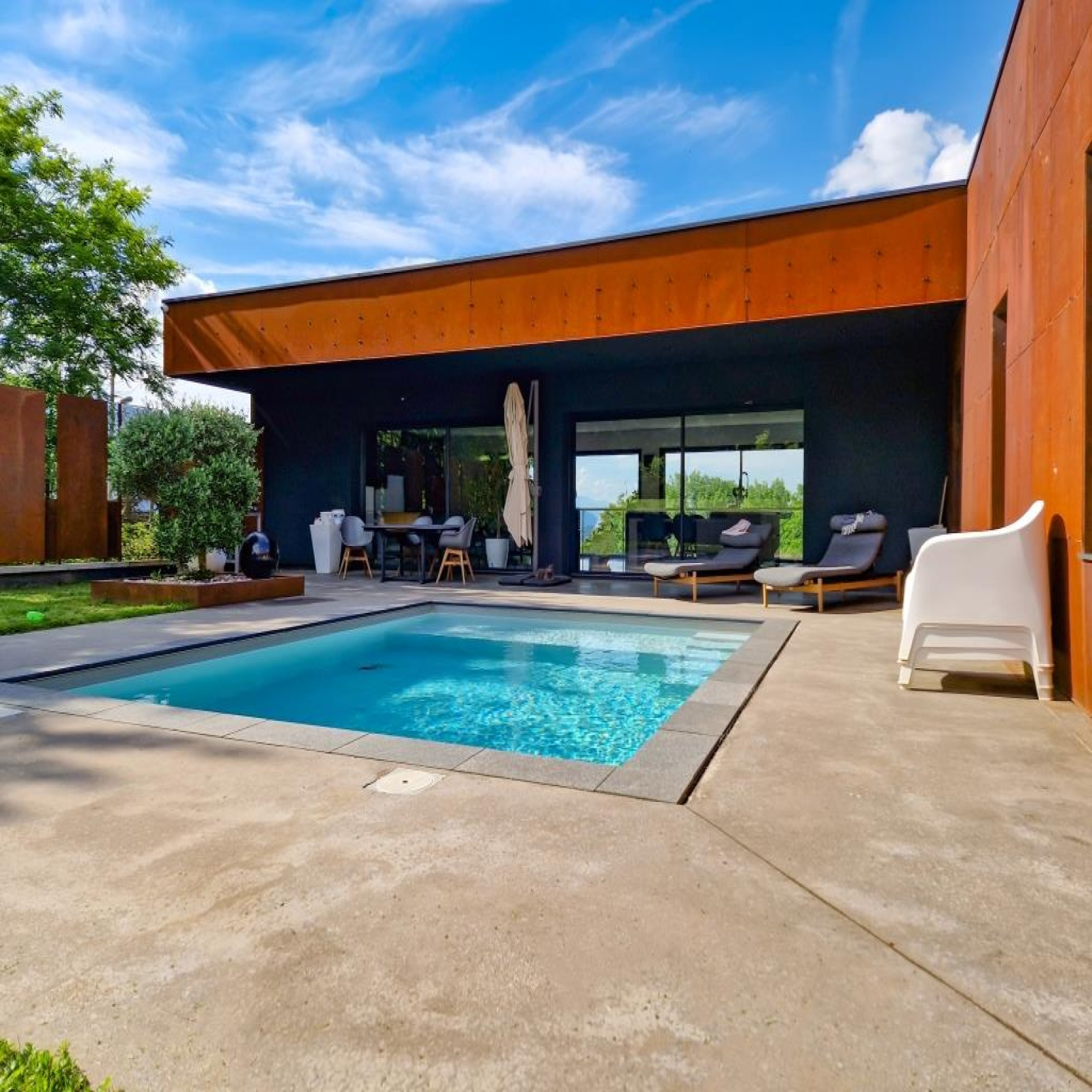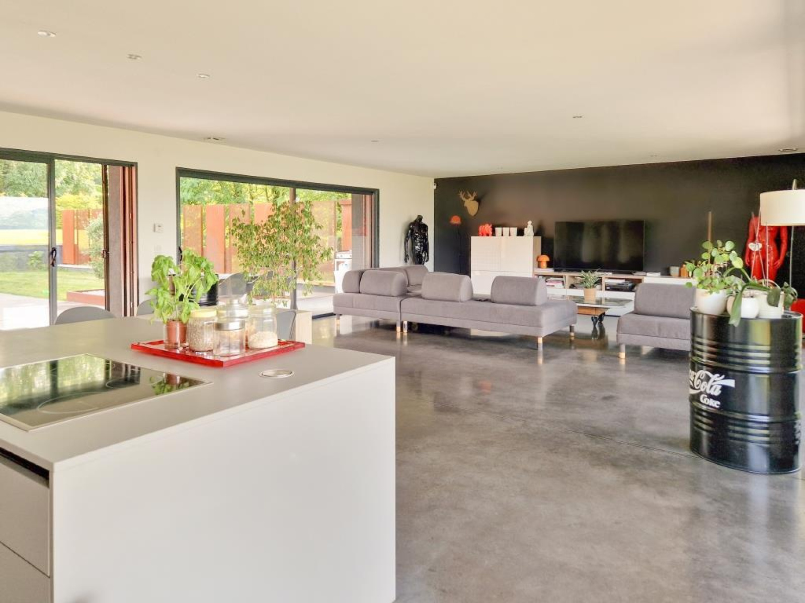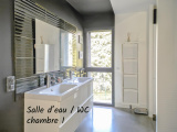 Terrasse environ 60 m2 avec piscine 5 x 4m, portail motorisé, volets et BSO motorisés, panneaux solaires en autoconsommation, alarme, adoucisseur, vidéophone, VMC double flux.
