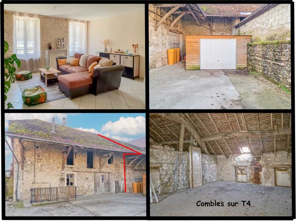 Gilles BUISSON vous propose, en exclusivité sur la commune de Virignin, cet appartement de type 4 offrant 113 m2 habitables + un garage + une grange d'environ 60 m2 au sol avec étage + une cave + des combles aménageables au-dessus de l'appartement. IMPORTANT : la toiture sera refaite pour la vente.