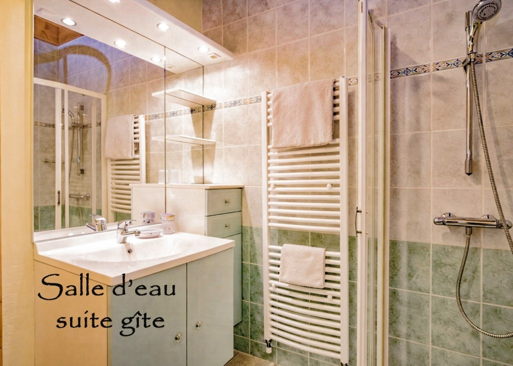 ETAGE 2 (gîtes) : pièce de vie avec cuisine équipée, suite avec sde et wc, wc indépendant.