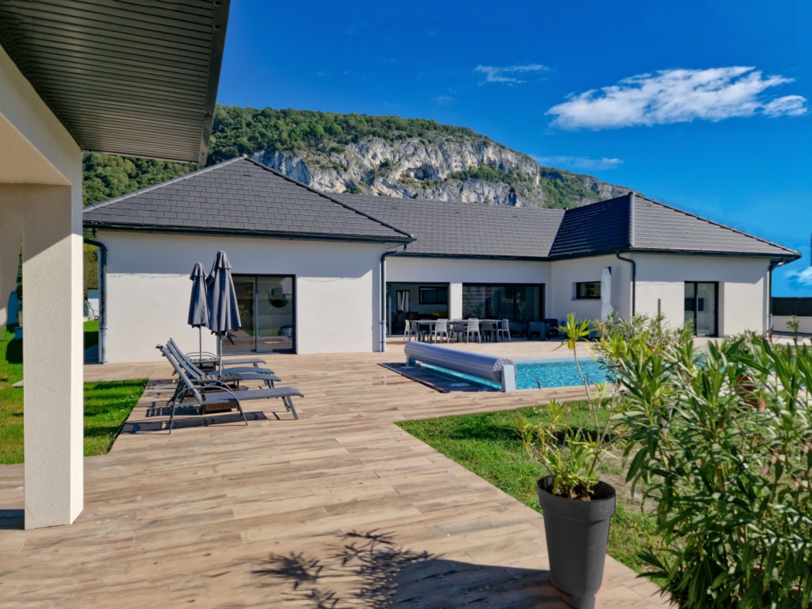 Gilles BUISSON vous propose en exclusivité, à Virignin, cette superbe villa achevée en 2022 offrant env. 190 m2 de plain-pied sur un parc de 1800 m2 environ.