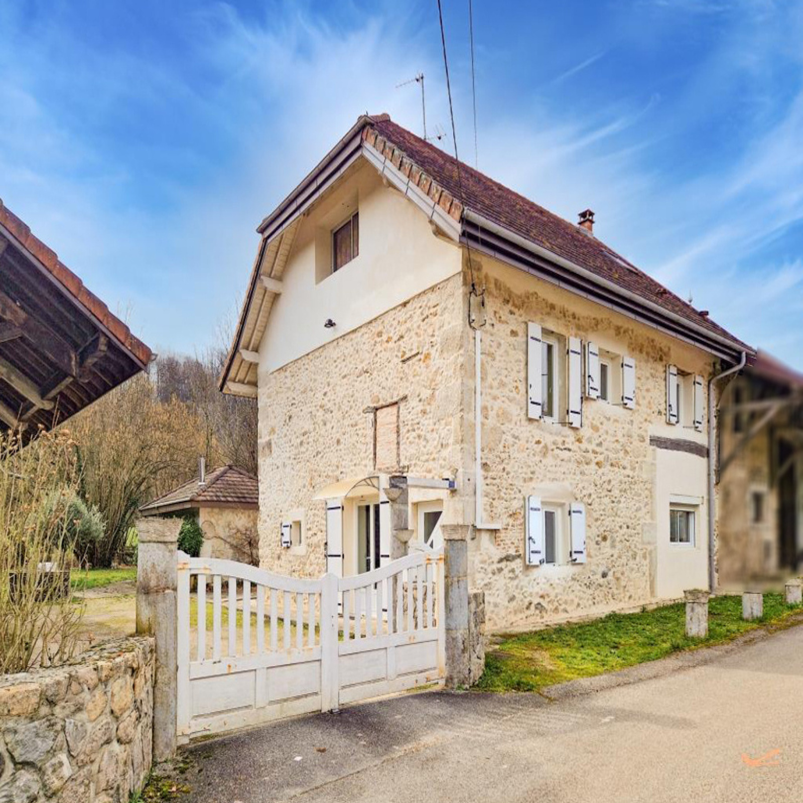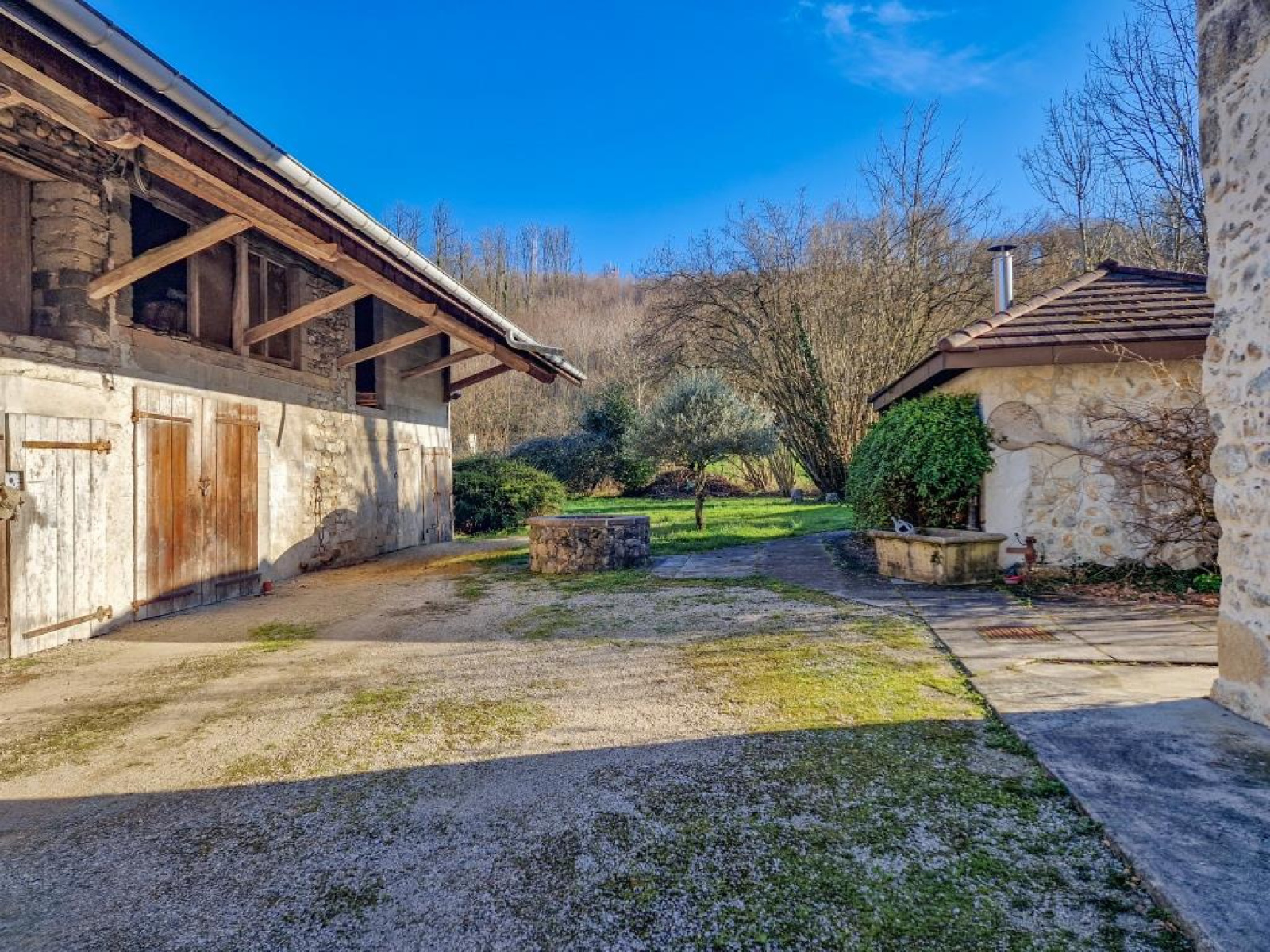 Assainissement collectif, portail motorisé, alarme, puits en eau équipé, vmc, four à pain avec cuisine d'été, fibre optique disponible.