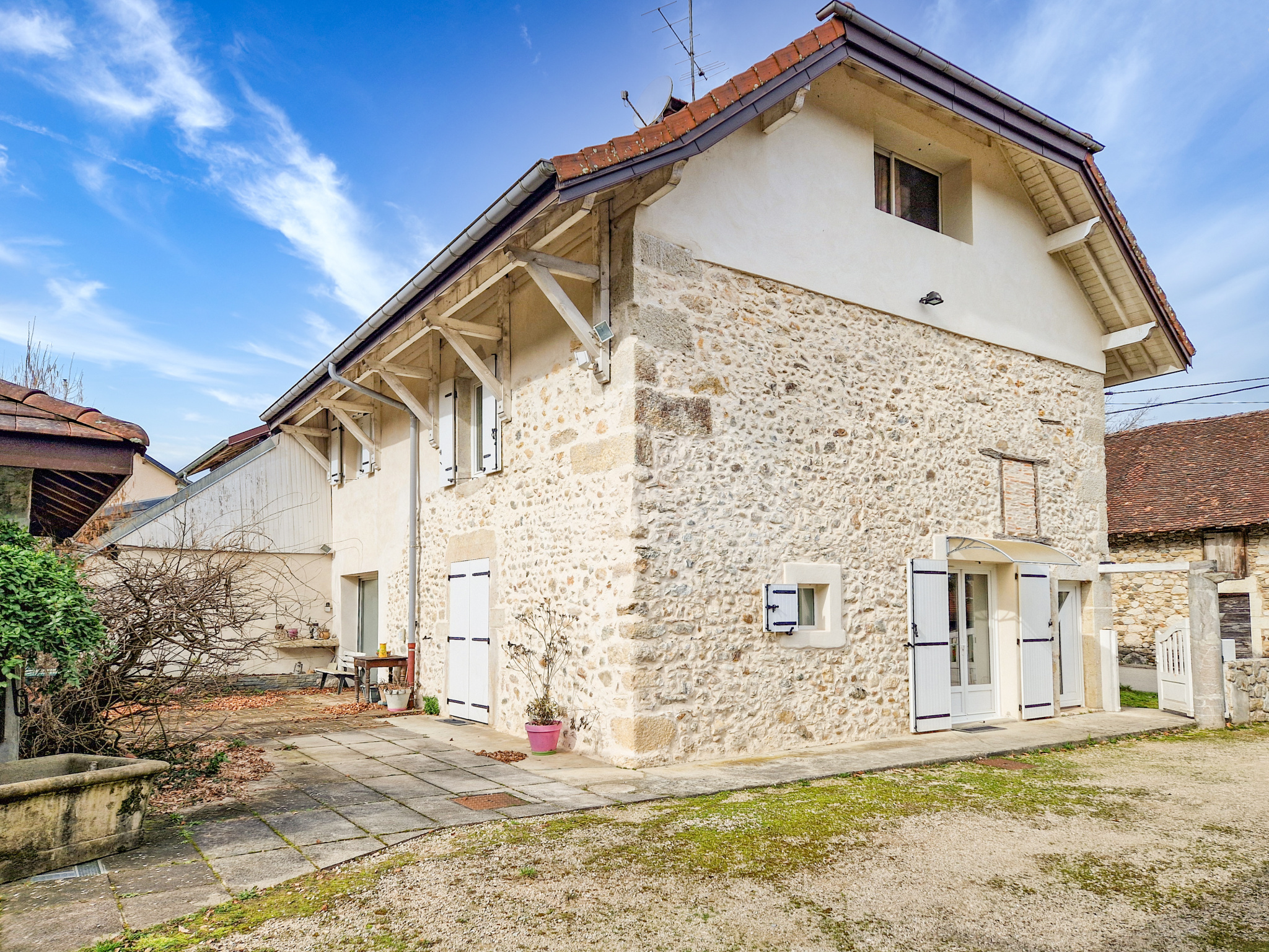 Gilles BUISSON vous propose, à Brens et en exclusivité cette jolie maison en pierres mitoyenne sur un côté sans gêne offrant environ 180 m2 habitables + une dépendance d'environ 150 m2 au sol sur un terrain de 1200 m2 cadastré.