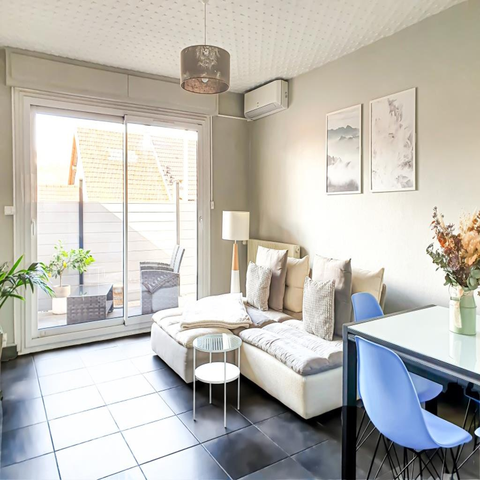 Gilles BUISSON vous propose en exclusivité ce très joli T3 d'environ 70 m2 + cave + terrasse + balcon/terrasse en 3ème étage sans ascenseur, dans un état irréprochable. Très jolie vue panoramique du balcon terrasse. Cuisine séparée équipée, salon séjour donnant sur la terrasse sans vis à vis, 2 chambres, salle d'eau et wc séparé. Cave d'environ 10 m2 et balcon terrasse d'environ 15 m2. Chauffage collectif au gaz par radiateurs (équipés de sous-compteurs) + clim réversible. A voir s'il ne serait pas + économique de se chauffer uniquement avec la PAC. Pas de parking, mais une place en location en face de l'immeuble. Charges copro : 216 €/mois chauffage et eau chaude comprise. La chaudière vient d'être changée le 15/04/2023, les factures de chauffage vont forcément beaucoup diminuer... Interphone, vmc, tout à l'égout, fibre optique disponible. A proximité immédiate de tous les commerces du centre ville.