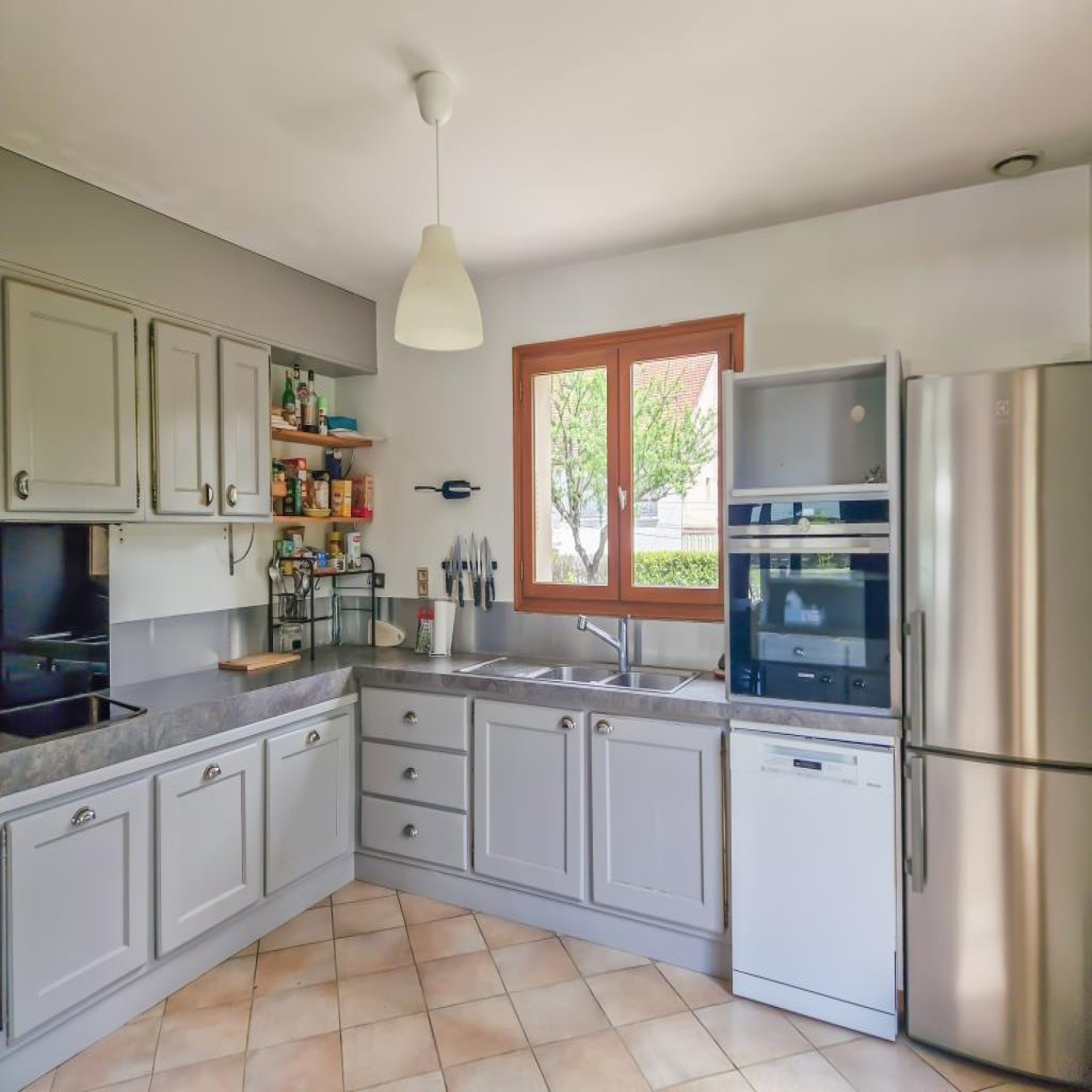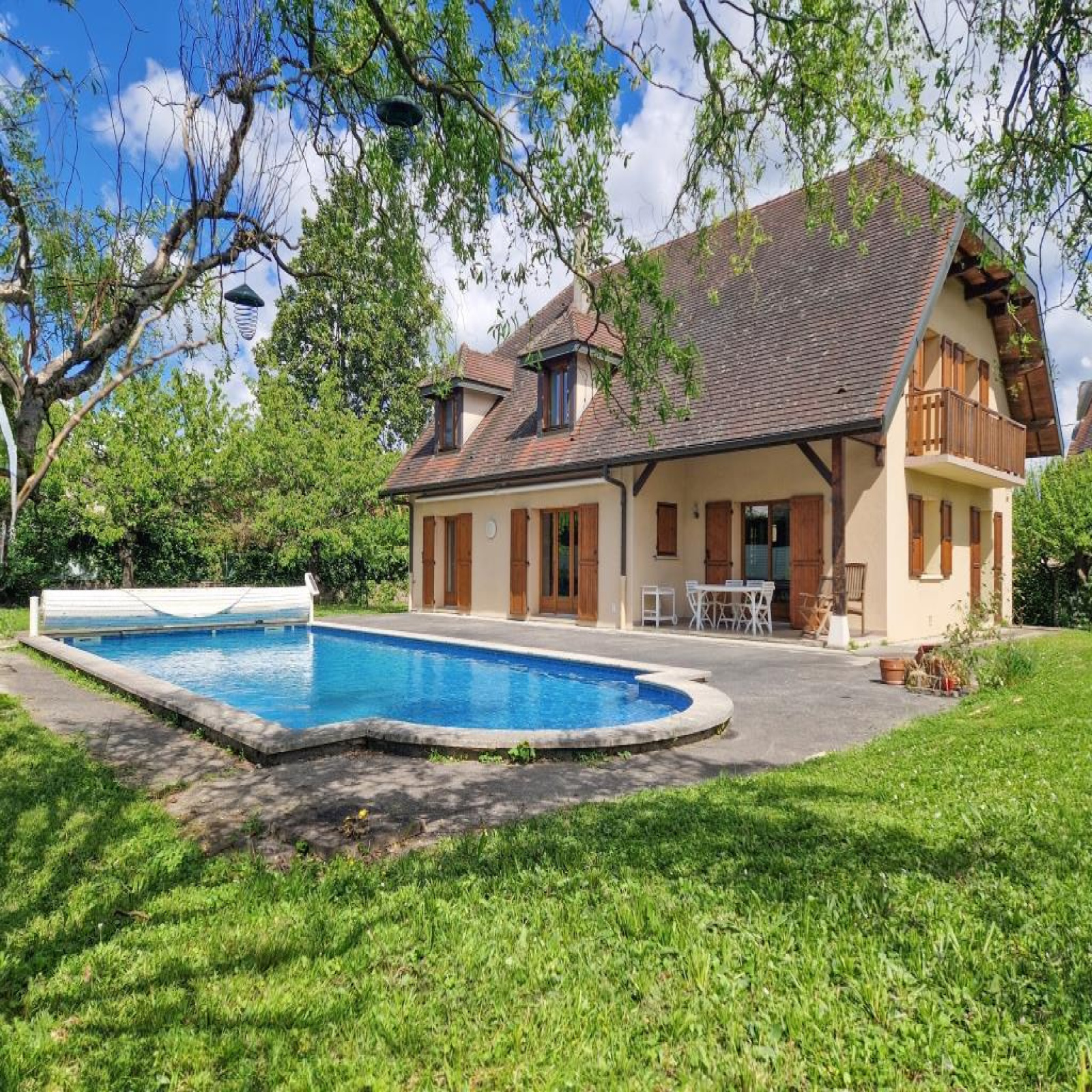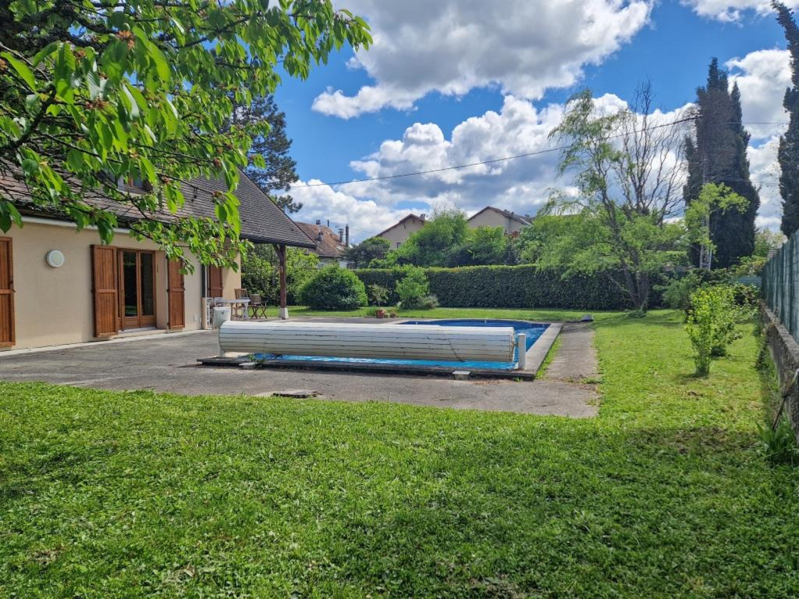Piscine enterrée 12 x 5 m, portail motorisé, aspiration centralisée, assainissement tout à l'égout.