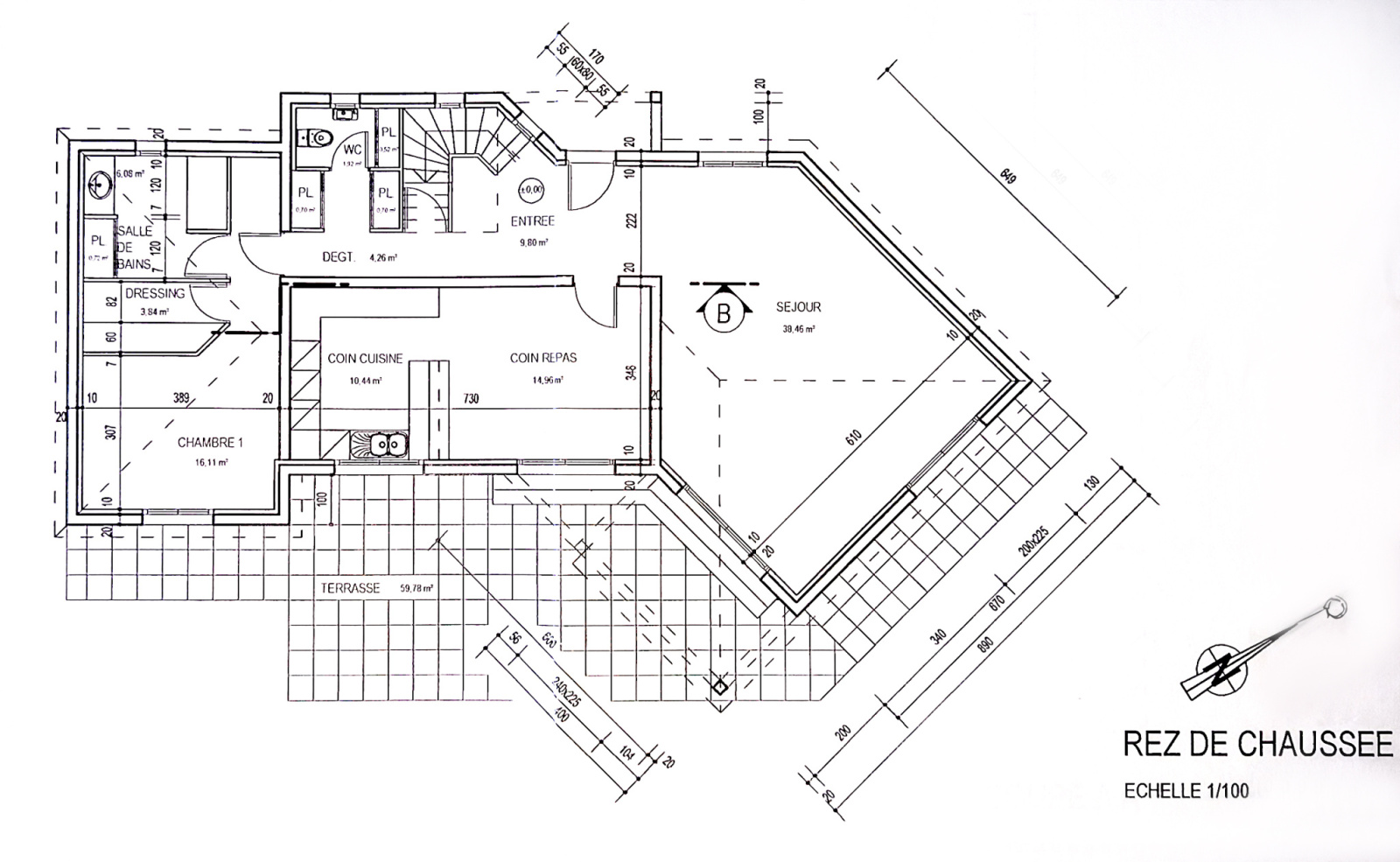 Rez de jardin : entrée, cuisine/salle à manger, salon/séjour, suite parentale avec dressing et salle d'eau, wc séparé,