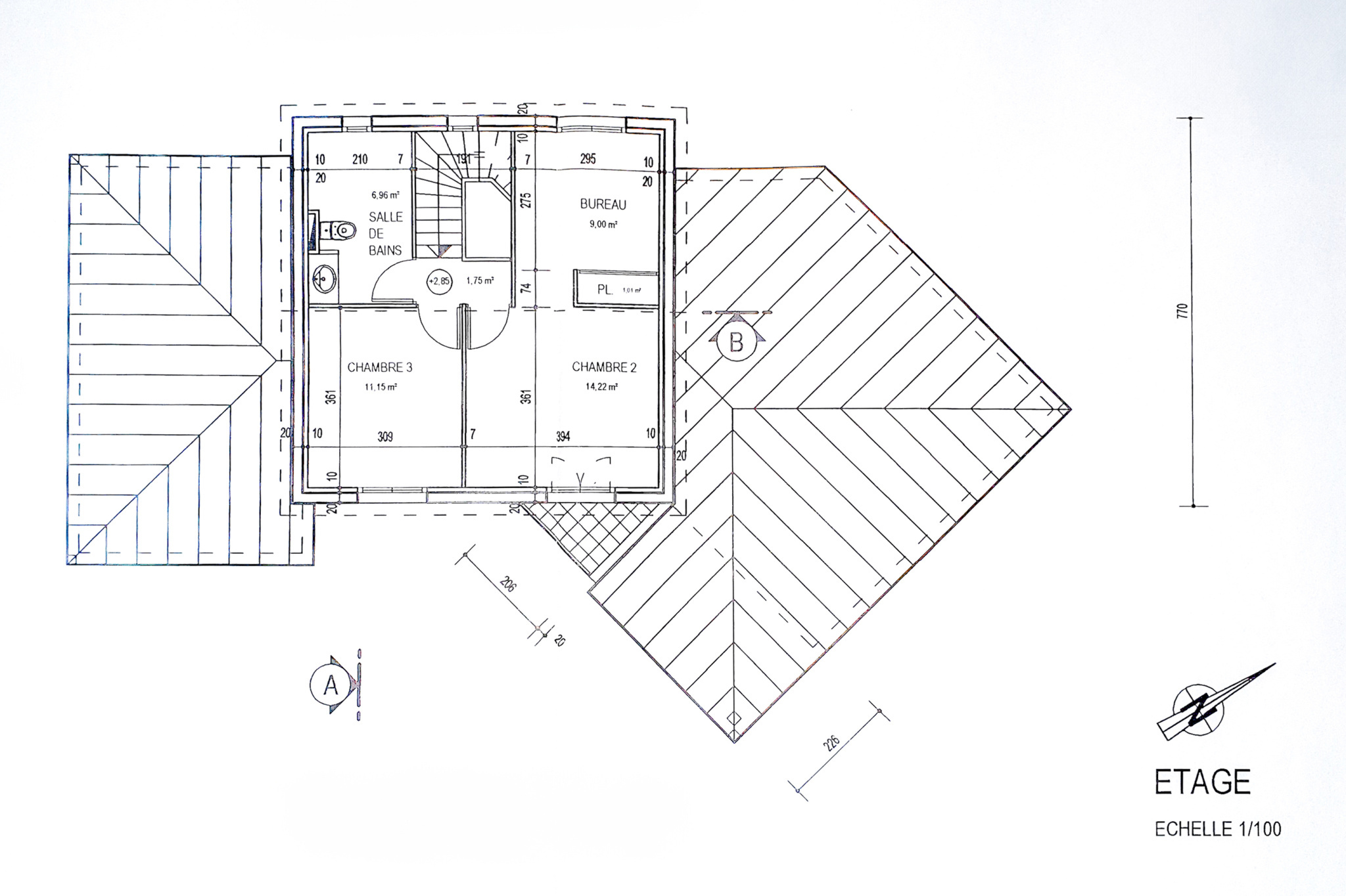 Etage : 2 chambres (possibilité 3), salle de bains/wc.