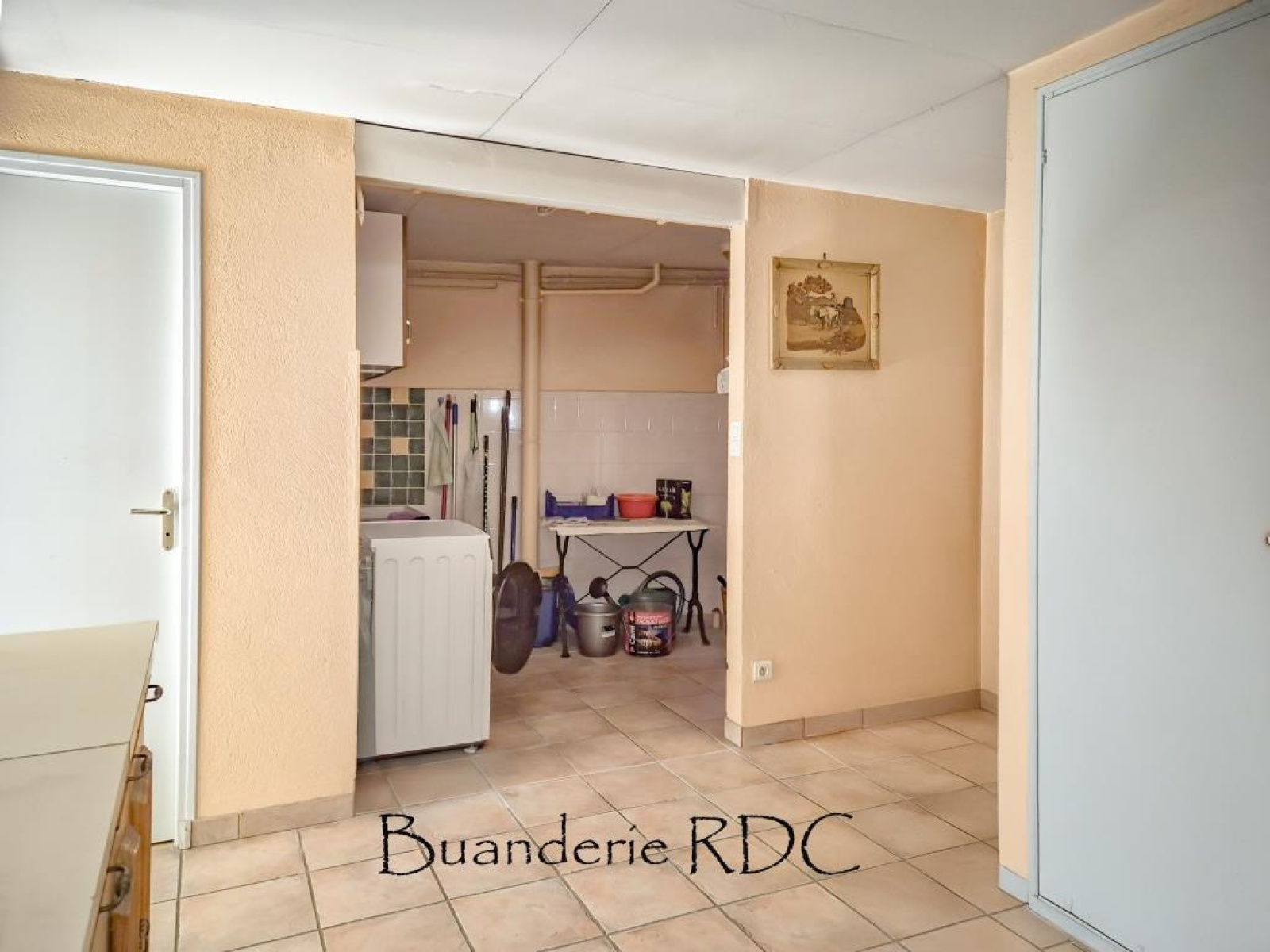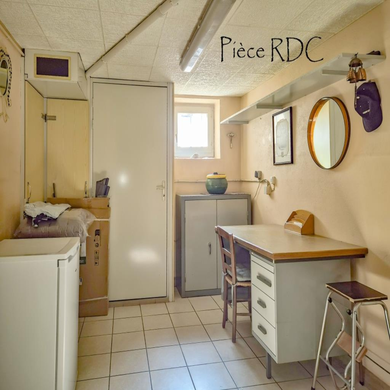 RDC : entrée, buanderie, locaux, garage, cave, remises.