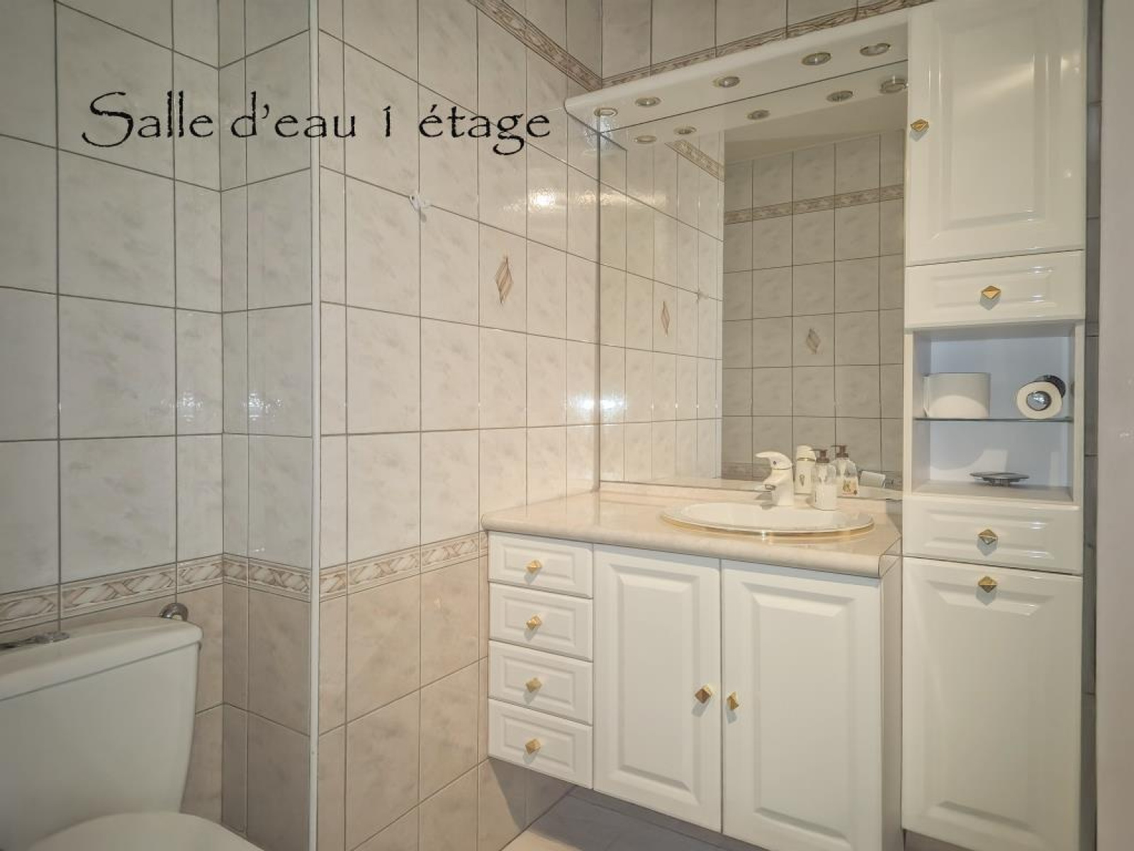 Etage 1 : cuisine équipée, salon/séjour avec cuisine et bar, salle d'eau, wc et dégagement.