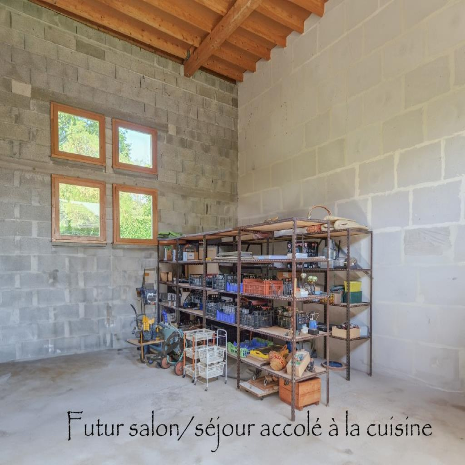 RDJ (dépendances) : pièce à aménager en extension de la cuisine, ouverture en place, bureau, wc, douche