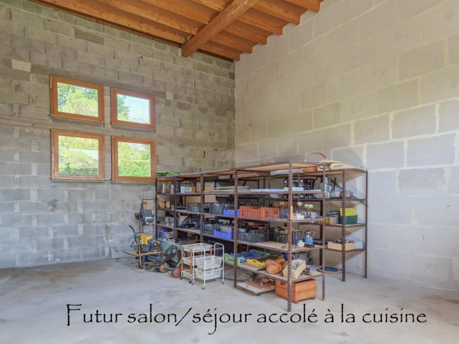Garage 60 m2, four à pain fonctionnel, local piscine et cave de plain-pied.