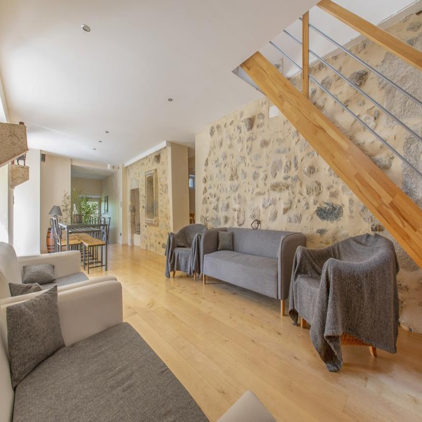 Gilles BUISSON vous propose, en exclusivité, cette très jolie maison en pierres de pays entièrement rénovée en 2009, offrant environ 140 m2 habitables (160 m2 au sol) + un appartement de type 2 indépendant à finir d'aménager (environ 40 m2).