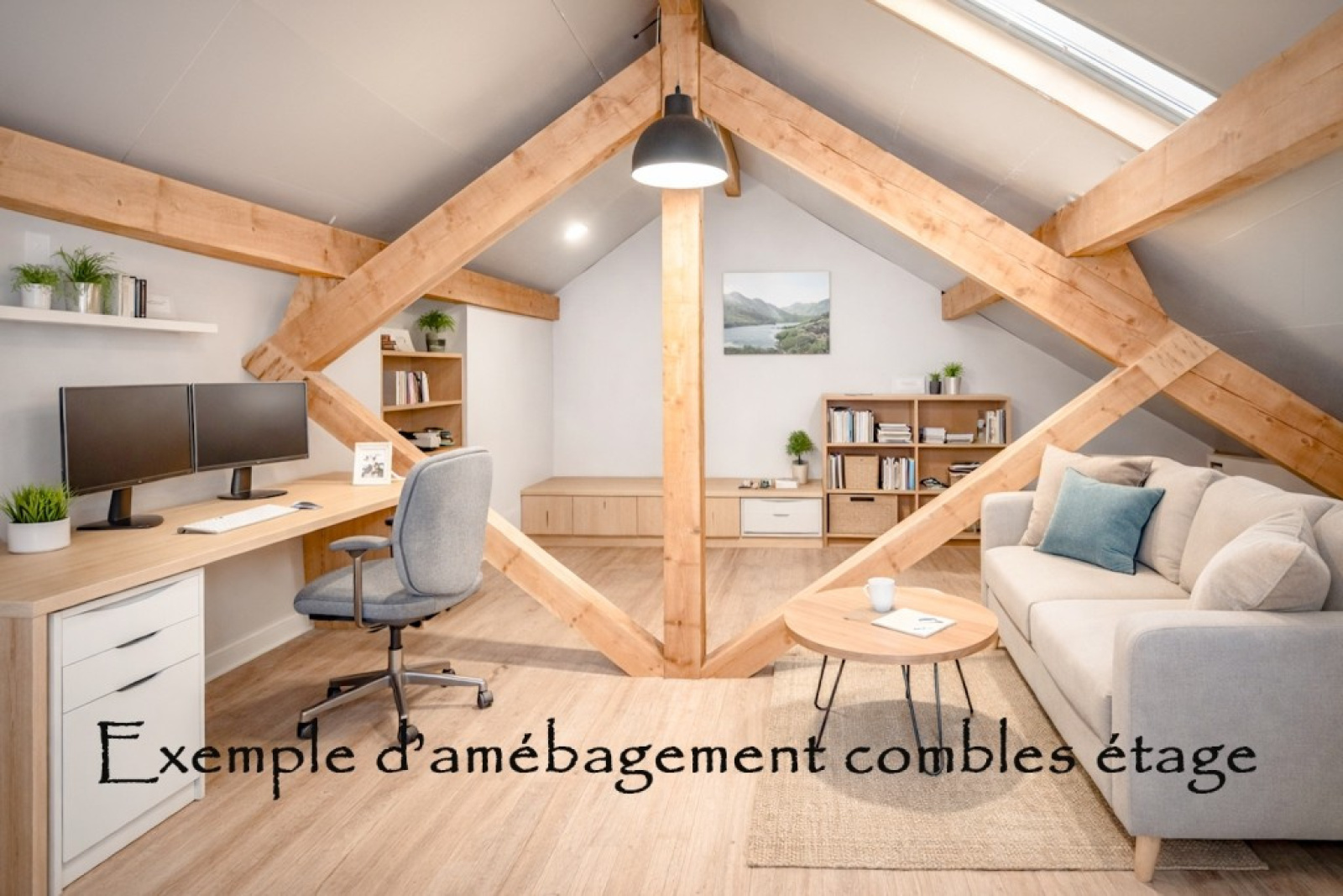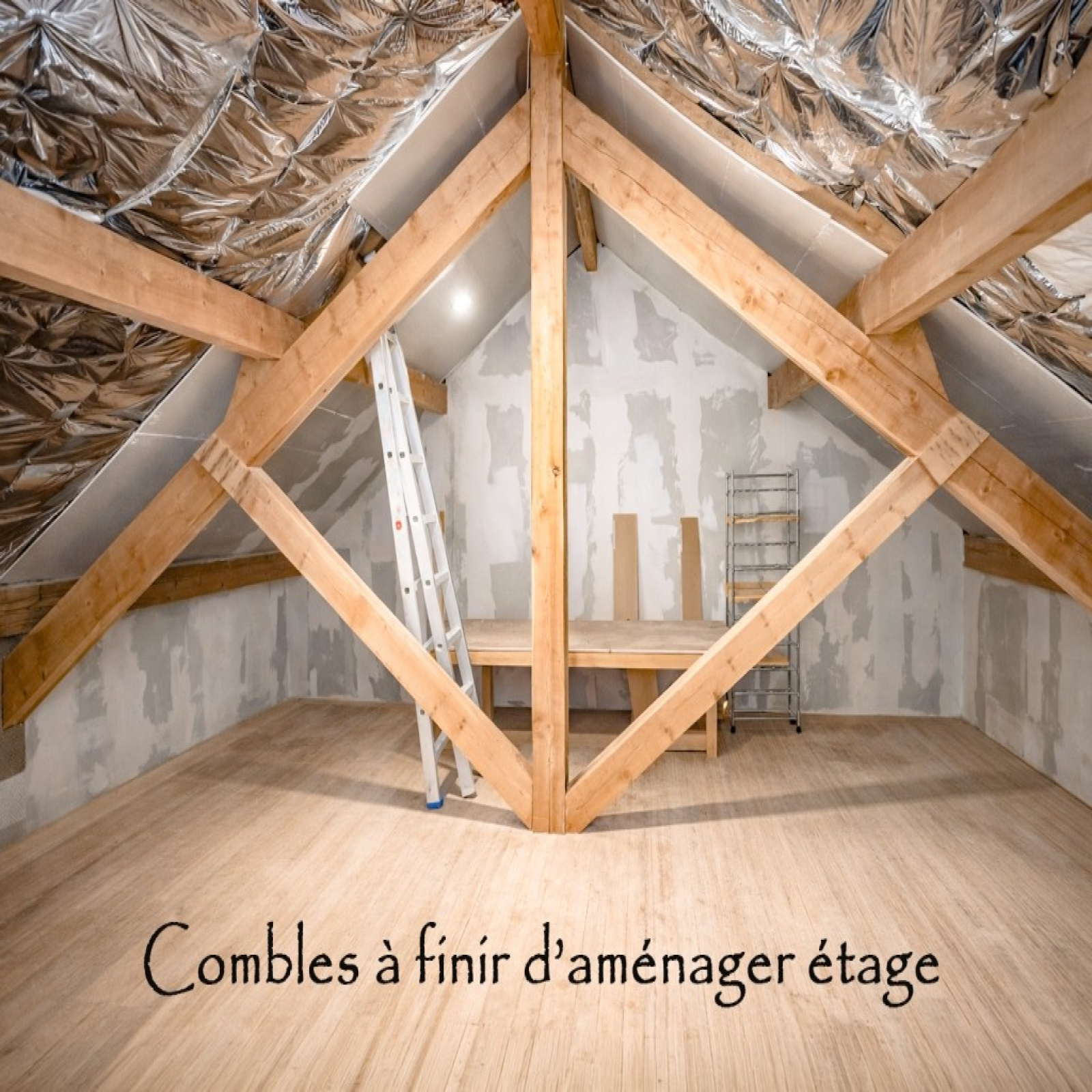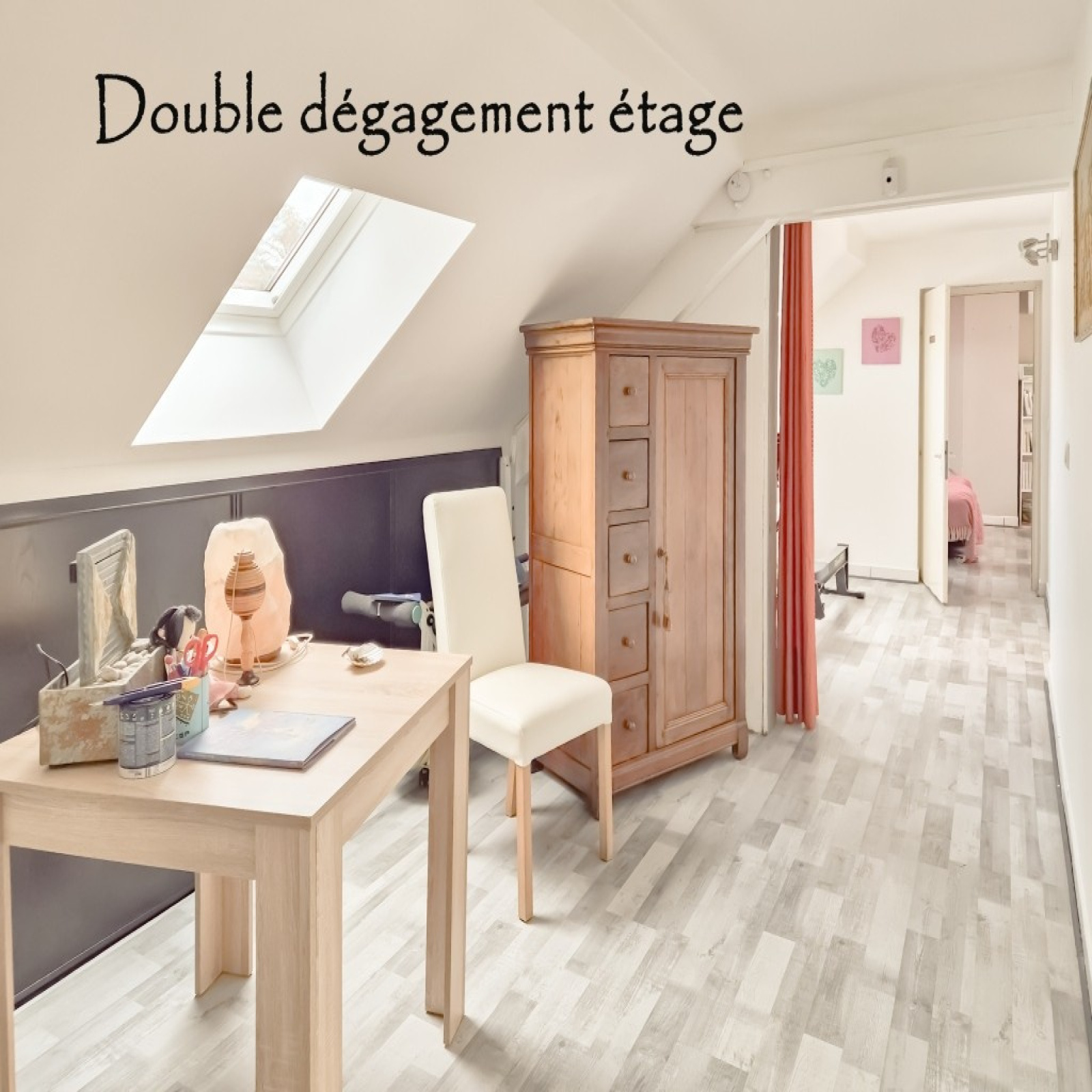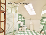 ETAGE : 2 chambres, 2 grands dégagements (bureaux), salle d'eau avac wc, combles aménageable pour environ 36 m2.
