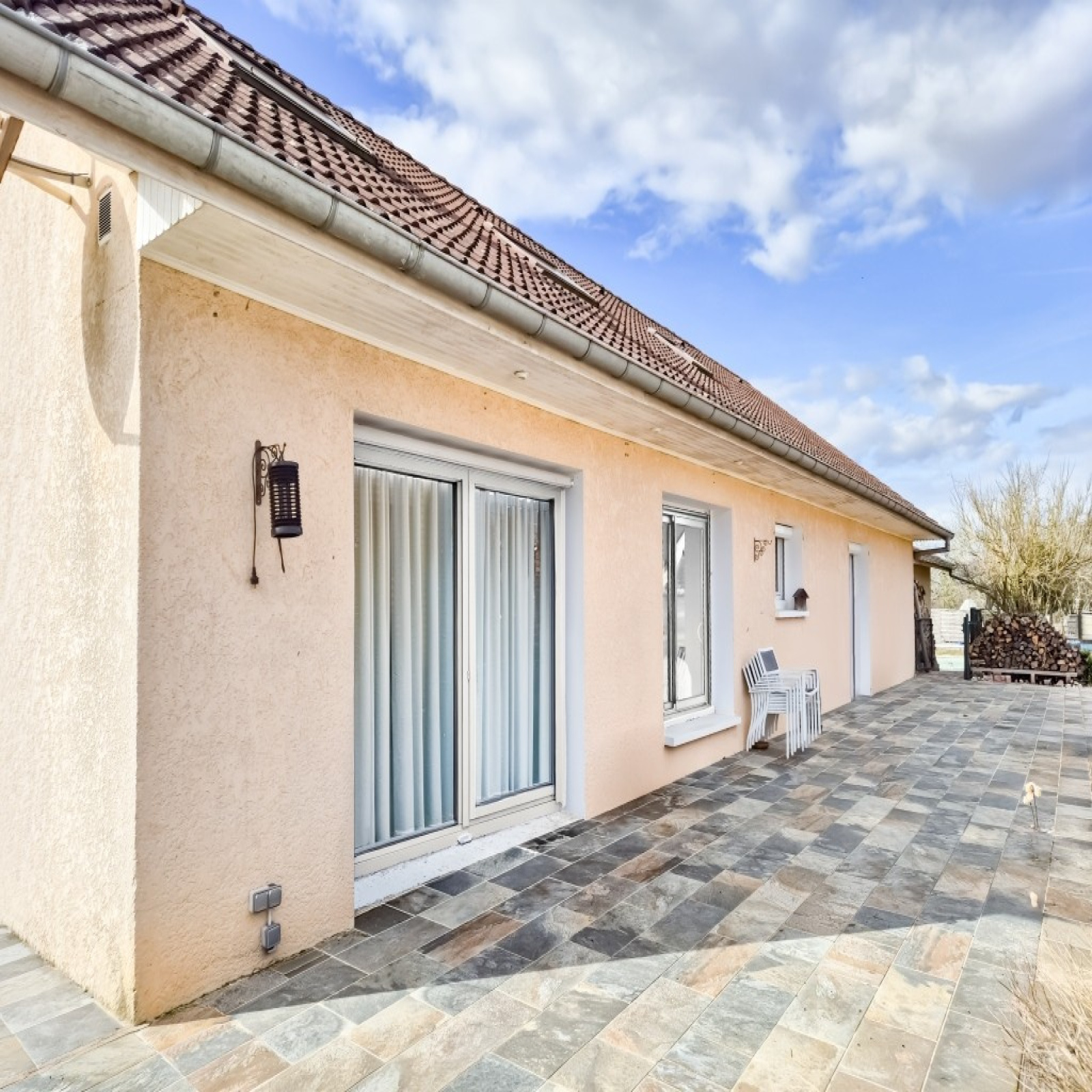 Garage de 35 m2 et abri bois de 10 m2, piscine 8 x 4 sécurisée, grande terrasse.