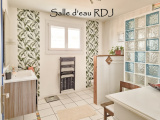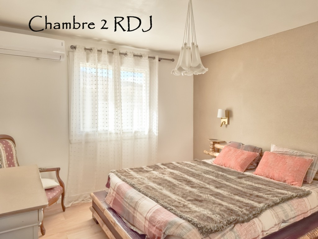 RDJ : entrée, Pièce de vie avec cuisine équipée, 2 chambres, salle d'eau, wc séparé, buanderie, local rangement et couloir.