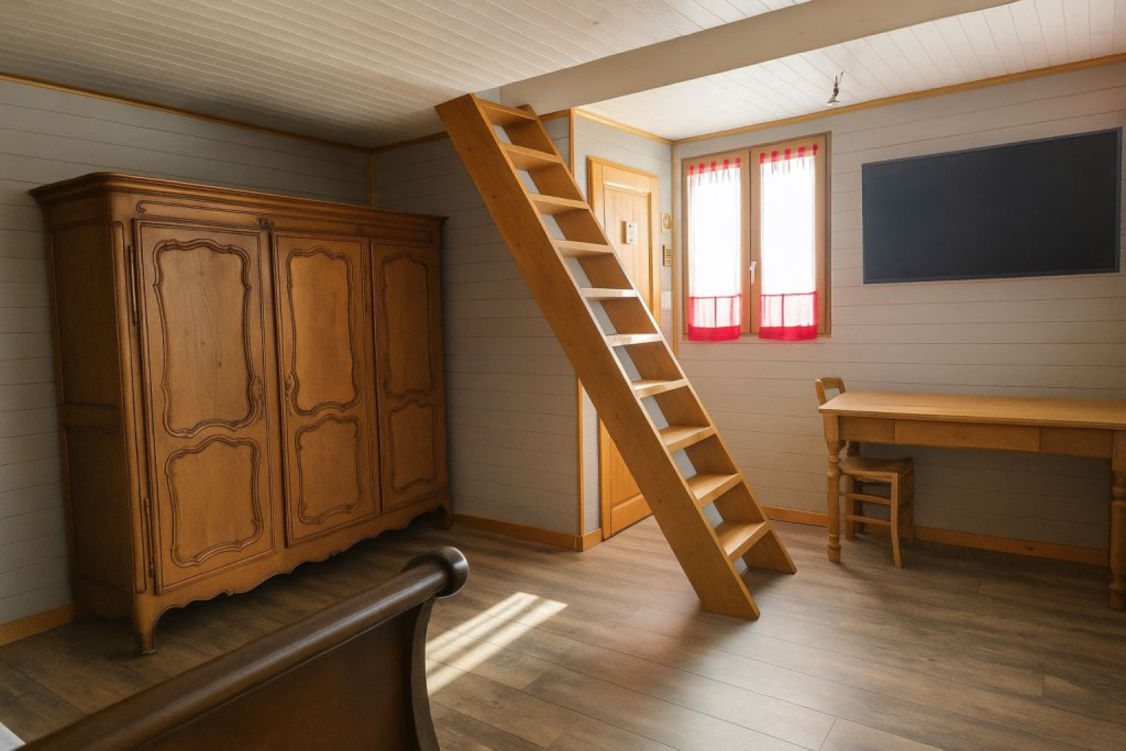 Belle opportunité pour un auto-constructeur qui peut habiter le chalet de temps de la construction de sa nouvelle maison, ou pour un projet RBNB...